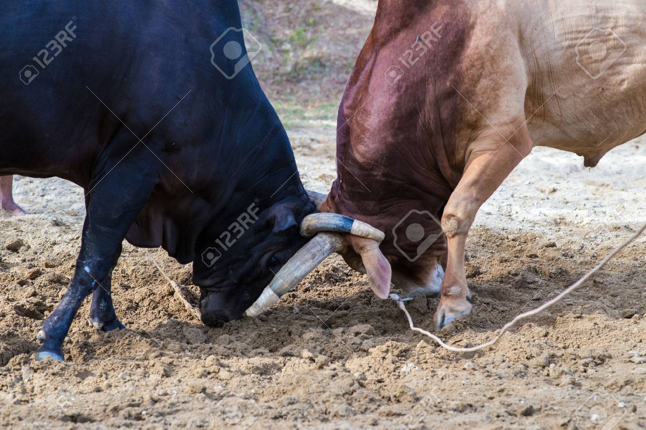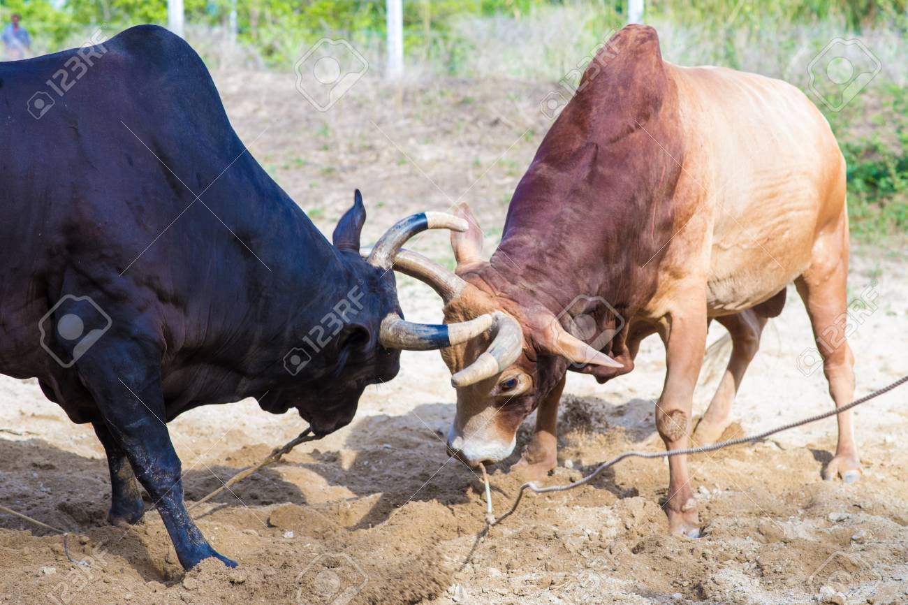 Bull Fighting On Soil Field Cow Fighting Is A Traditional Game Of Thailand Stock Photo - Alamy
