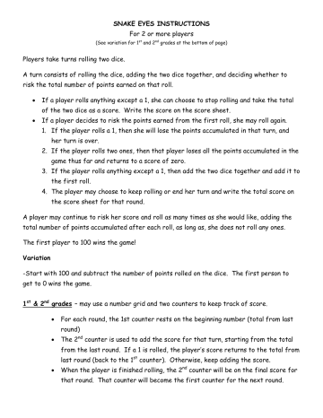 Snake Eyes Game Rules